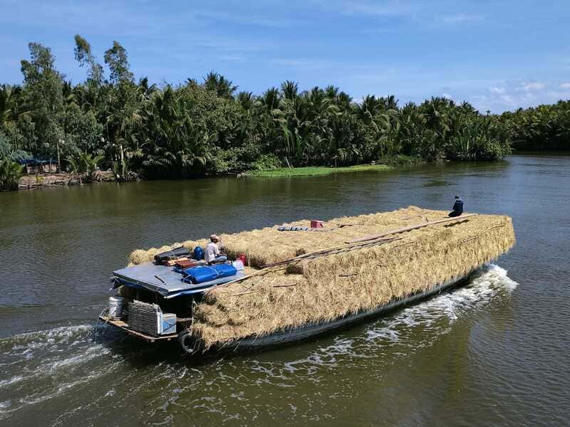 On y découvre aussi le delta en barque, le long des petits canaux bordés de palmiers d’eau, avec des arrêts dans des ateliers locaux ou des vergers. Cette approche permet de mieux observer la vie quotidienne et l’environnement naturel du Mékong, loin de l’animation des grands marchés.