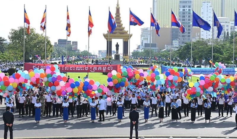 - Le matin : Le Roi (ou ses représentants) allume la flamme de la victoire au Monument de l'Indépendance à Phnom Penh. C'est le moment de voir les défilés officiels.