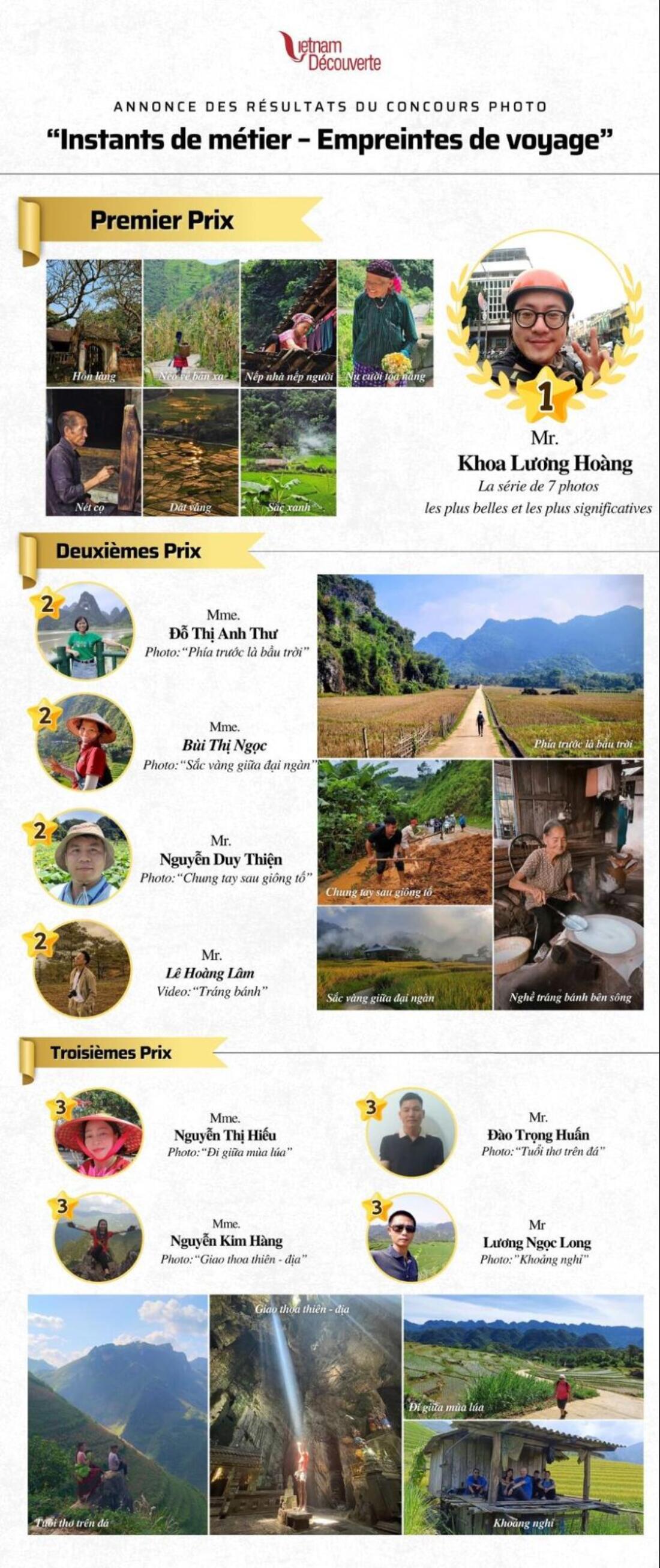 Le premier prix du Concours Photo Interne Vietnam Découverte de cette année a été attribué à la série de 7 photos impressionnantes de l’auteur Khoa Lương Hoàng. Ces clichés capturent des moments uniques et saisissants, illustrant de manière magnifique l’essence de son parcours et la beauté des paysages qu’il a immortalisés.