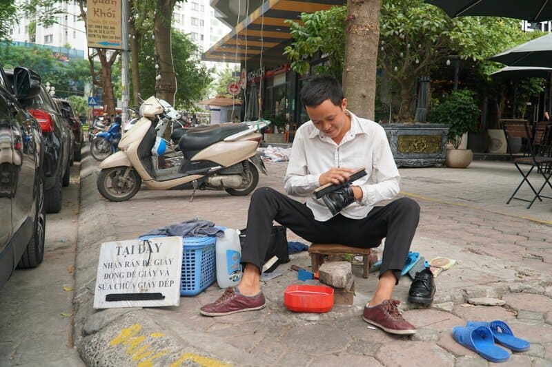 Au milieu des gratte-ciel et des rues animées, les cireurs de chaussures restent présents, assis ou marchant le long des trottoirs, à l’affût de clients. Leur travail simple mais essentiel, lustrer, ajuster ou réparer, demeure un fragment vivant de la mémoire urbaine. Humble et parfois fatigant, il persiste comme un témoignage précieux de la vie laborieuse. Dans les grandes villes, les cireurs, venus de toutes les régions et de tous âges, composent ensemble un tableau vivant des trottoirs vietnamiens.