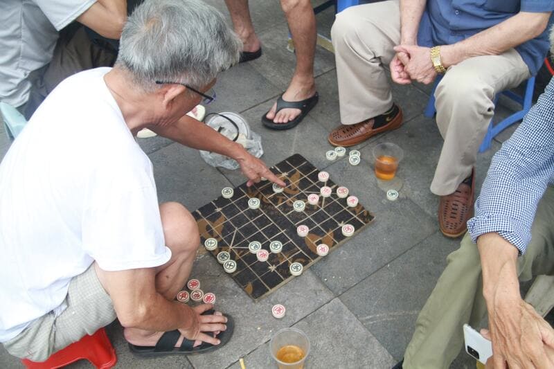 En fin d’après-midi à Hanoï, autour du lac Hoàn Kiếm ou dans les ruelles anciennes, on voit souvent des groupes de personnes rassemblées pour jouer aux échecs chinois. Les spectateurs regardent, les joueurs concentrés, chaque coup attire les regards. Une théière fumante, quelques commentaires animés, et quelques messieurs aux cheveux gris viennent régulièrement jouer comme un rituel quotidien.