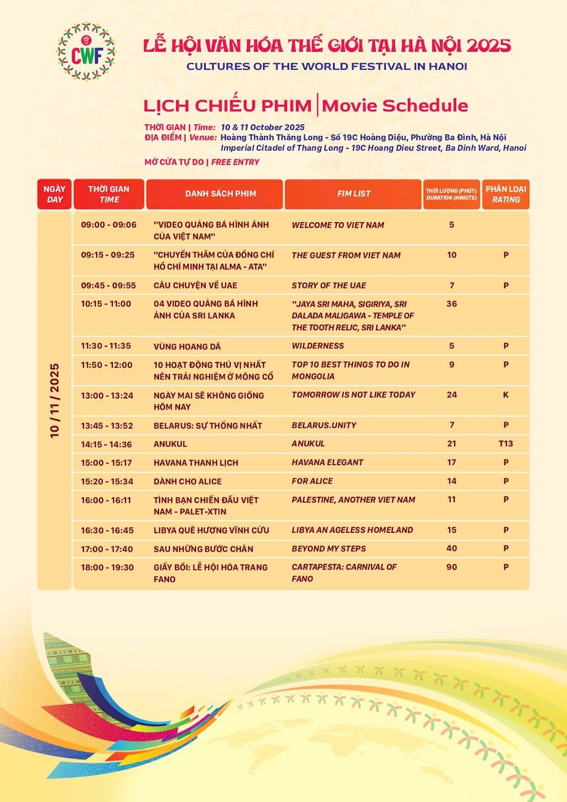Cette célébration unique, soutenue par près de 50 ambassades et centres culturels étrangers, propose 45 espaces culturels, 33 stands gastronomiques, 16 troupes artistiques, 12 stands de livres et la participation de 20 pays au cinéma. Au cœur de la Citadelle impériale de Thang Long, les visiteurs découvriront la danse, la musique, l'art, les défilés, la gastronomie et l'artisanat, faisant de Hanoï un véritable carrefour des cultures et de l’amitié internationale.