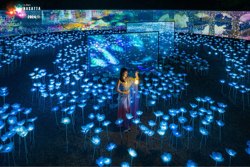 Le Nasatta Light Festival, plus grand événement lumineux en plein air de Thaïlande, transforme le parc Nasatta en une véritable “capitale de la lumière” célébrant la culture et la créativité thaïlandaises.