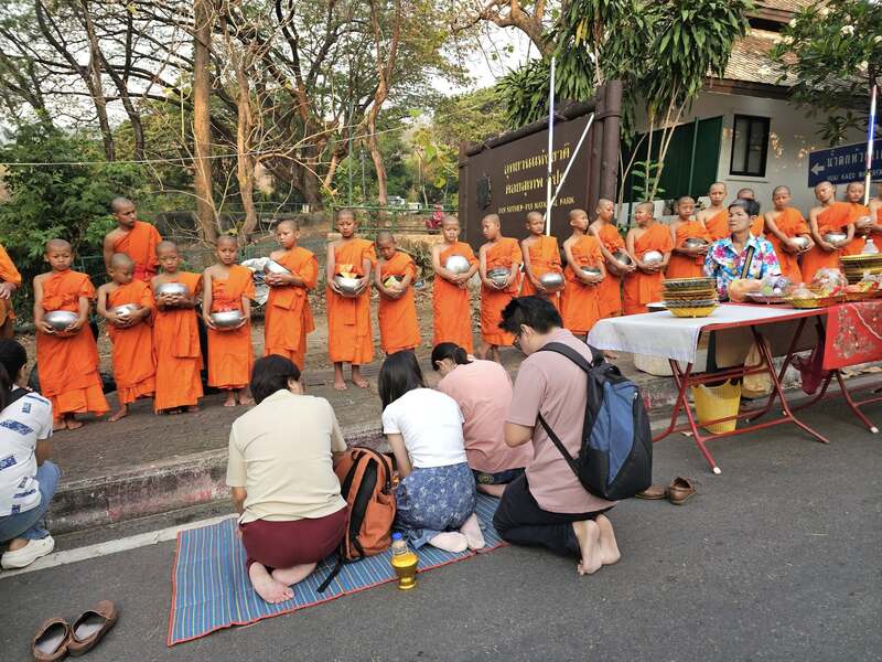Les visiteurs peuvent également participer à la cérémonie d’aumônes Tak Bat Devo.