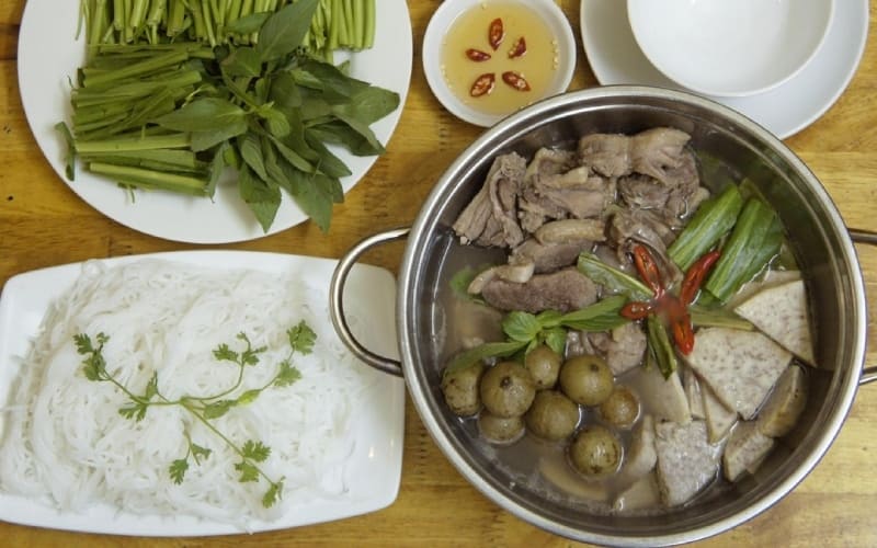 Les ingrédients typiques de cette fondue incluent des légumes, des champignons et du tofu, qui se combinent pour créer une saveur pure et délicieuse. Ce plat végétarien est très populaire et peut être apprécié partout au Vietnam, mais vous trouverez une plus grande diversité dans le sud, ainsi que dans des endroits comme Sapa et Da Lat, connus pour leur culture légumière réputée au Vietnam.