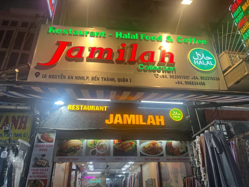 Situé dans la rue Nguyen An Ninh, Jamilah Halal Food & Coffee est un restaurant malaisien proposant une variété de plats halal. Proche de la mosquée Jamia Al‑Musulman (Saigon Central Mosque), située au 66 Dong Du, dans le même district. Il est apprécié pour son offre halal et son menu qui mélange des spécialités malaisiennes, indonésiennes et vietnamiennes, idéal pour un repas après la prière ou une promenade dans le quartier.