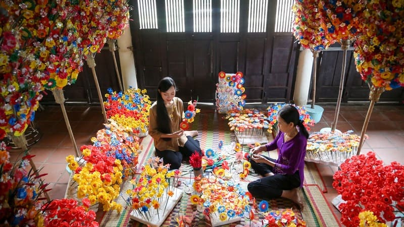 À l’occasion du Tết (Nouvel An lunaire), vous pouvez visiter le village des fleurs en papier Thanh Tiên, âgé de plus de 300 ans. C’est à cette période que le village devient le plus animé : les artisans travaillent sans relâche pour créer des fleurs en papier colorées destinées aux offrandes et aux décorations du Nouvel An. Une visite à ce moment-là vous permettra d’observer tout le processus artisanal et de repartir avec des souvenirs uniques.