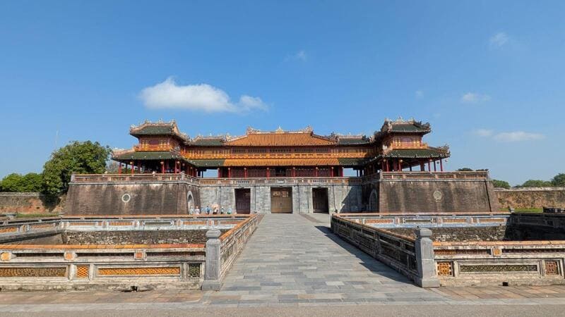 Vol ou train vers Hue. Ambiance plus calme, plus patrimoniale.