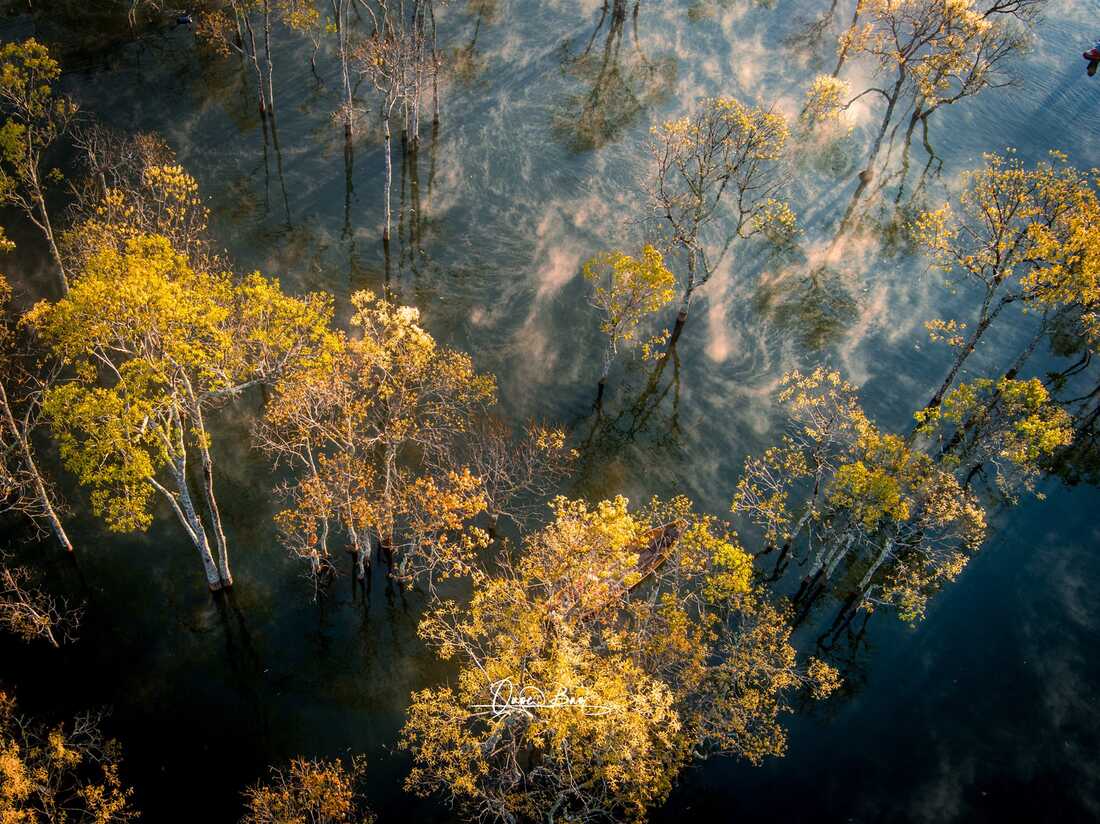 Levez-vous tôt (idéalement avant 6h30) pour saisir les premières lueurs du jour. La surface du lac est souvent enveloppée de brume ; les arbres scintillent sous une lumière douce ; le silence règne. C’est l’un des moments les plus poétiques de la journée.