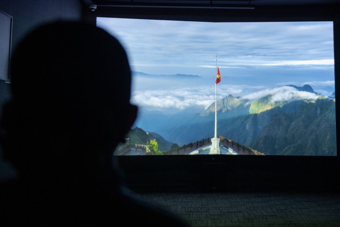 Dans un espace immersif, entouré de grands écrans, les visiteurs dégustent un bol de phở dans une ambiance enveloppante, presque cinématographique. La cuisine est entièrement ouverte, permettant d’observer chaque geste, du service du bouillon à la présentation finale. L’équipe travaille avec des gants et dans des conditions d’hygiène strictes.