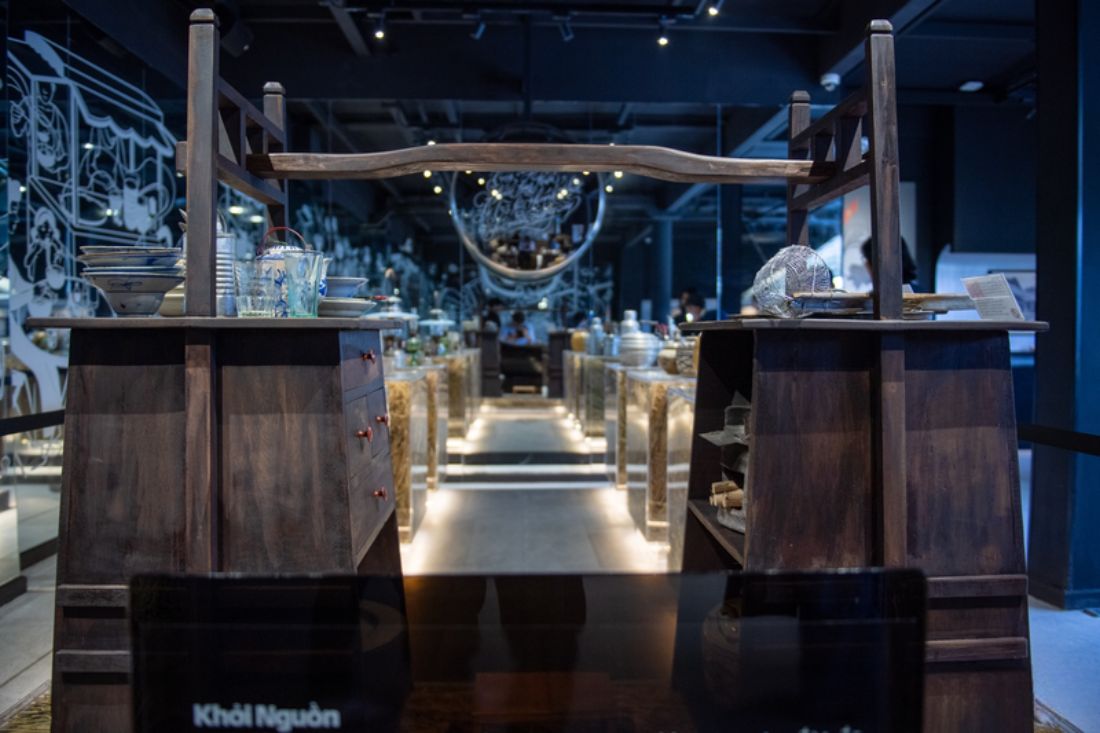 Parmi les vitrines, on découvre des marmites anciennes, des mortiers en pierre, des épices brutes, mais aussi des pages de dictionnaires où apparaît pour la première fois le mot « phở ». Plus de 200 pièces sont présentées, accompagnées d’archives et de documents retraçant la diversité du phở dans les trois régions du Vietnam.