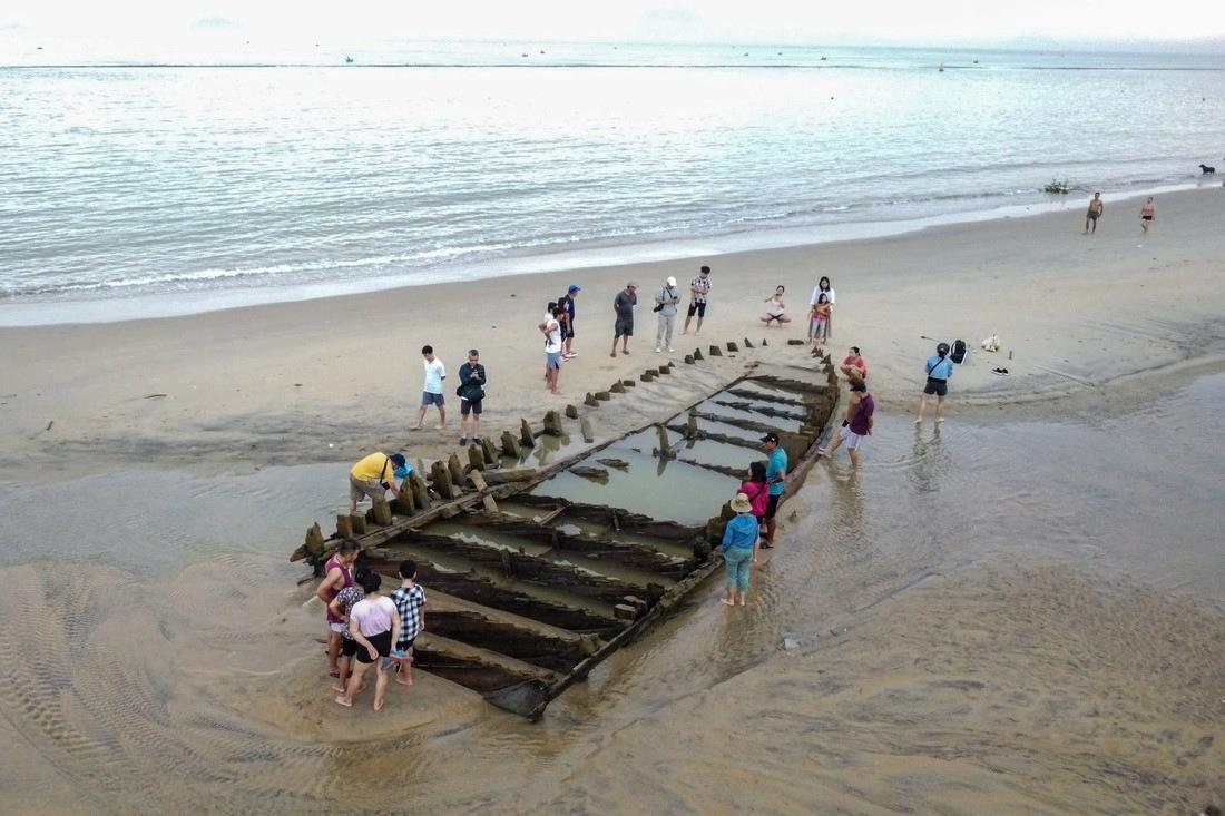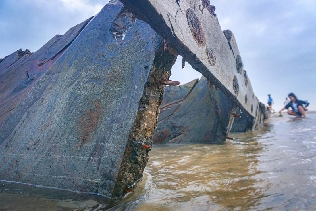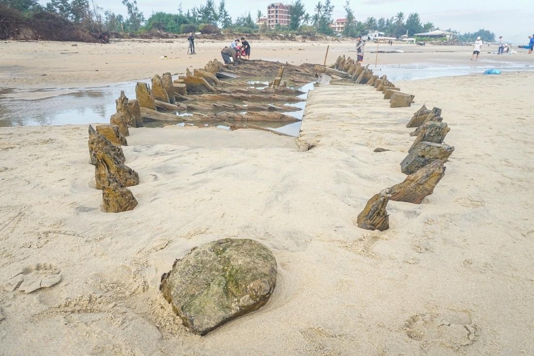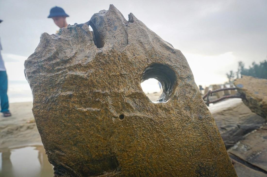 Après plusieurs mois de disparition, un navire ancien présumé naufragé a refait surface sur la plage de Hoi An, Da Nang, suite au passage du typhon Kalmaegi.