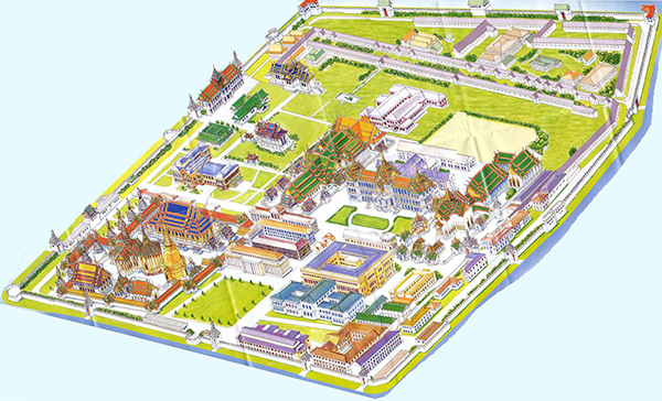 D'une superficie totale d'environ 218 000 m², le complexe du Grand Palais comprend des salles de cérémonie, des résidences royales, des bureaux administratifs et le temple le plus sacré de Thaïlande : le Wat Phra Kaew (le Temple du Bouddha d'Émeraude).
