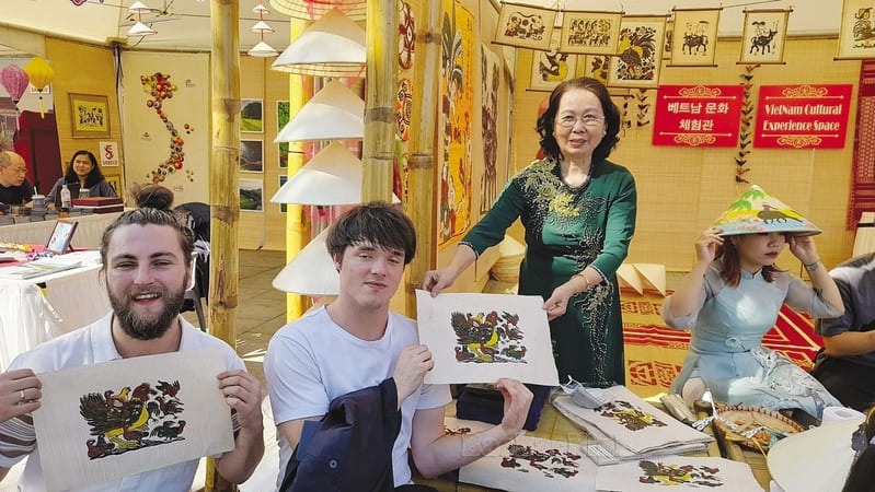 La peinture de Đông Hồ est une estampe populaire du village de Đông Hồ, à Bắc Ninh, près de Hanoï. Elle peint des scènes de la vie de tous les jours (garder les buffles, récolter des noix de coco, se battre) mais aussi des images symboliques comme les cochons, les poulets ou le rêve d'une maison prospère. Cet art populaire exprime les souhaits des Vietnamiens : sagesse, vertu, richesse et prospérité. Chaque couleur a une signification : rouge pour la chance, jaune pour la noblesse, vert pour la vie, noir pour la force et blanc pour la pureté.