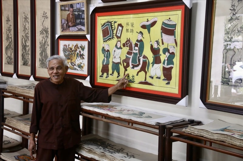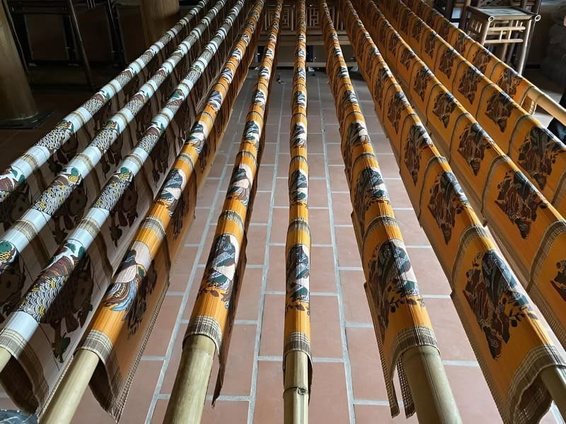 Aujourd'hui, cet art ancestral est précieusement préservé principalement par deux familles d'artisans maîtres, notamment celles de Nguyễn Hữu Quả (que j'ai eu la chance de rencontrer) et de Nguyễn Đăng Chế. Ces familles jouent un rôle crucial non seulement en continuant à produire des peintures, mais aussi en transmettant leur savoir-faire aux jeunes générations et en accueillant les visiteurs pour partager leur passion. Bien que l'artisanat soit confronté à des défis modernes, leur dévouement, ainsi que les ateliers proposés aux visiteurs, aident à maintenir cette tradition vivante.