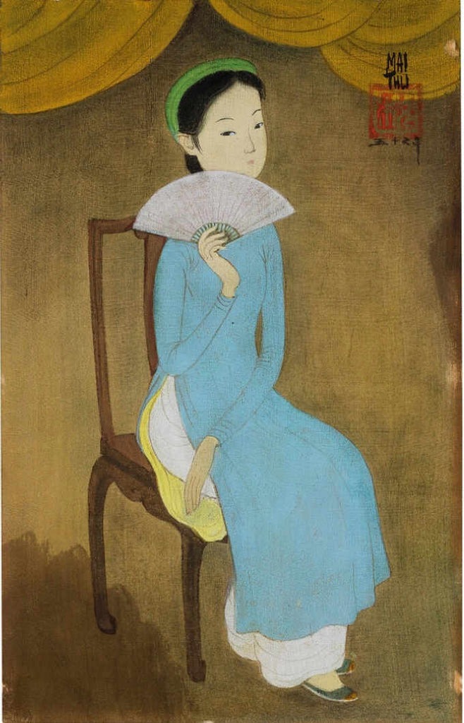 Seule femme du quatuor, ses œuvres sont plus rares et souvent intimes. Elle excelle dans les portraits de femmes et les scènes de maternité, comme "Mère et enfant" (vendu pour plus de 529 000 euros en 2022), où elle mélange gouache, encre et couleurs sur soie pour donner aux visages une lumière presque divine, capturant des moments tendres de la vie quotidienne vietnamienne