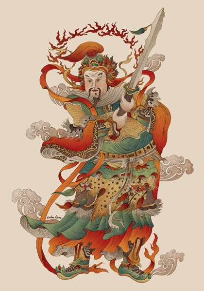 - Hang Trong : Contrairement à Dong Ho qui imprime tout, les artisans de Hang Trong n'impriment que les contours noirs. Le reste est peint à la main. Ils utilisent la technique du "Vờn màu" (ombrage), créant des dégradés sophistiqués qui donnent du volume aux personnages. Leurs sujets favoris sont les divinités taoïstes, notamment le célèbre tableau "Les Cinq Tigres" (Ngũ Hổ) représentant les 5 éléments de l'univers.