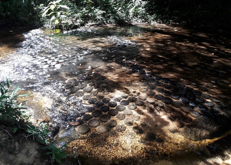- La rivière des Mille Linga (Kbal Spean) : l’un des sites religieux les plus uniques de Phnom Kulen est cette rivière parsemée de milliers de linga et yoni gravés directement dans le lit de la rivière. Ces linga ne sont pas sur les rives, mais protégés sous l’eau pour éviter les branches et débris flottants. Dans l’hindouisme, le linga symbolise Shiva, représentant à la fois la puissance créatrice et destructrice. L’eau qui coule sur ces linga est considérée comme bénissant et purifiant les fidèles tout en protégeant l’Empire d’Angkor. Des rituels Abhisheka, signifiant purification et bénédiction, étaient régulièrement réalisés ici.
