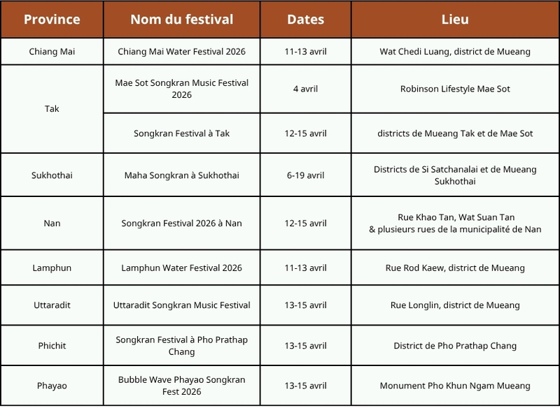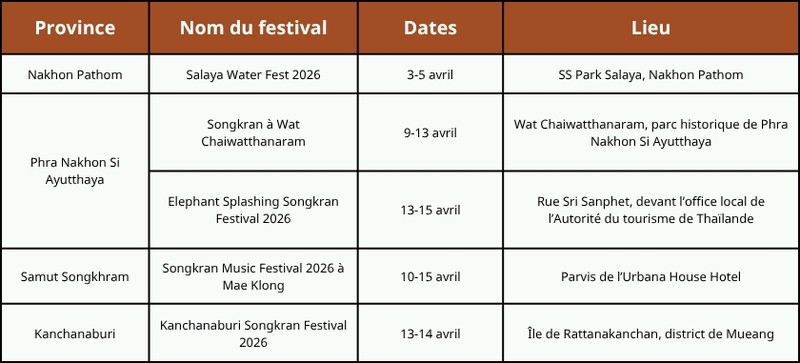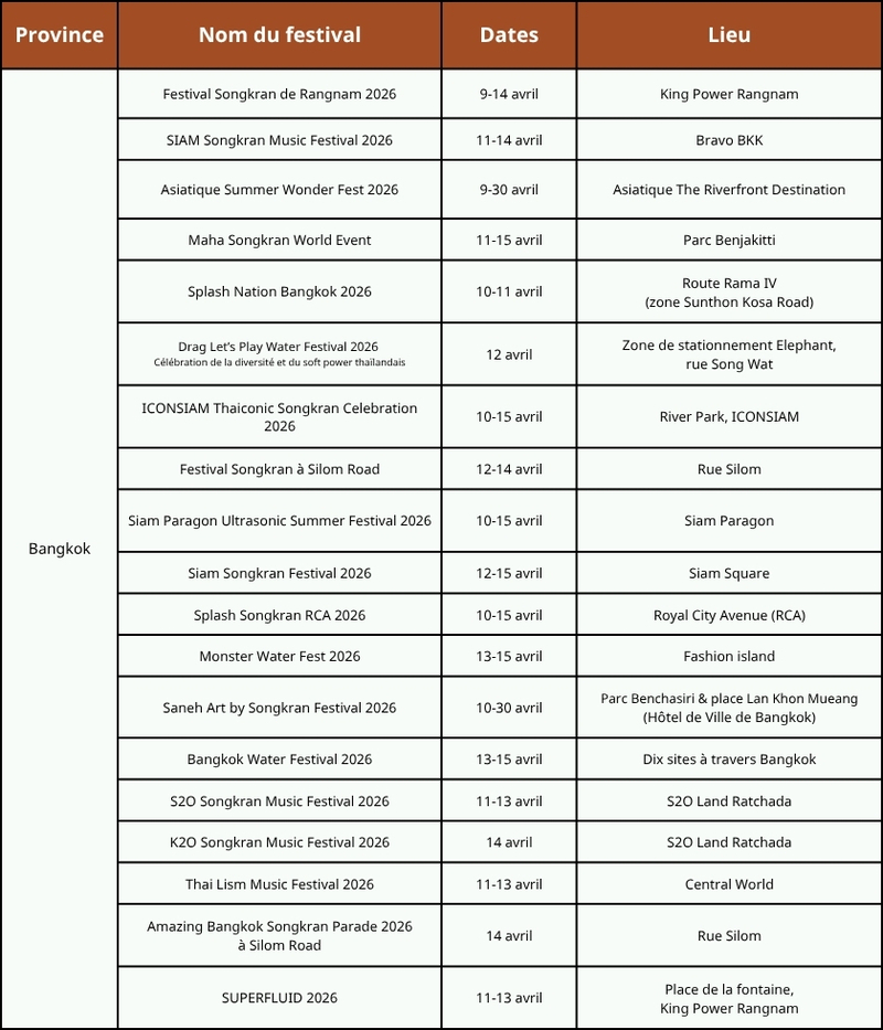 4. Itinéraire des célébrations du Songkran 2026 en Thaïlande