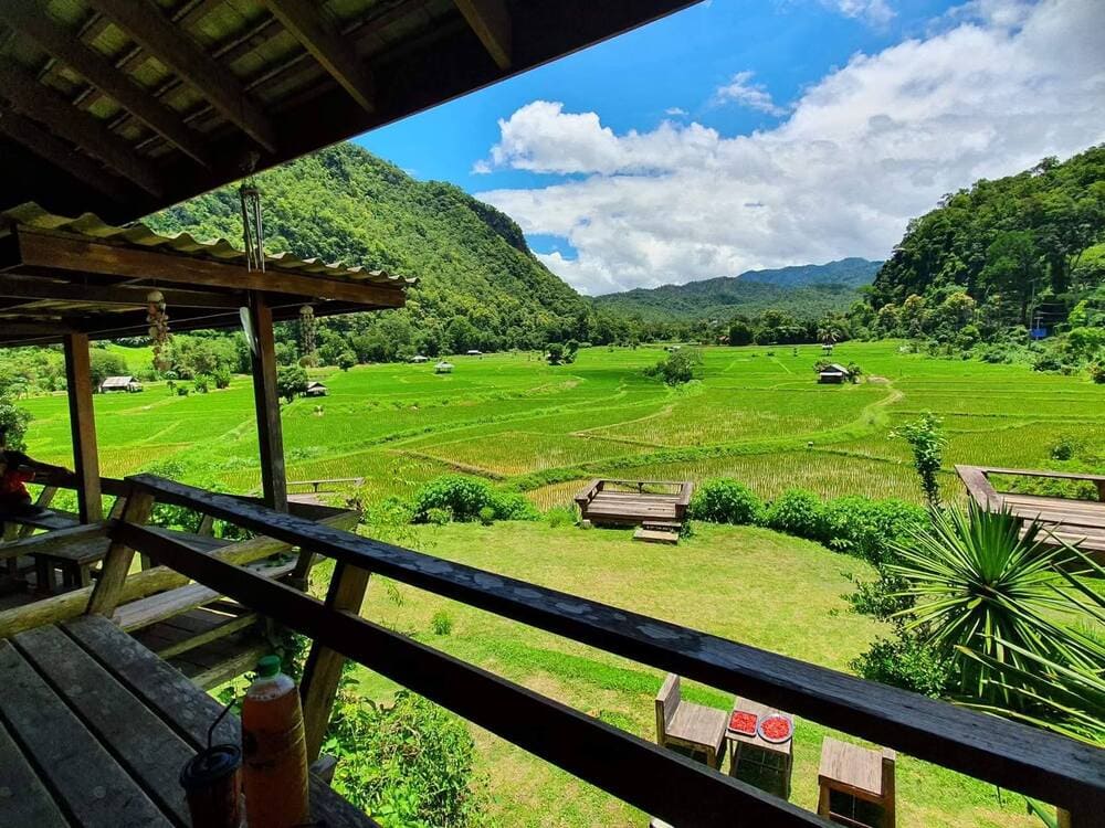 Le Nord de la Thaïlande est marqué par des montagnes couvertes de forêt et des vallées parsemées de rizières. Les routes sinueuses traversent ces paysages, offrant des vues spectaculaires sur les collines verdoyantes, les rizières changeant de couleur selon la saison, et les villages pittoresques situés près des rivières.