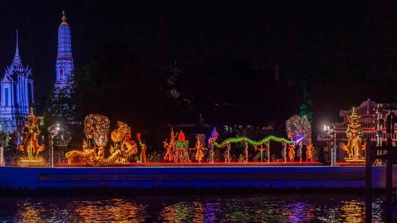 Présenté sous le nom “Rhapsodie du Chao Phraya”, il combine des installations lumineuses et ballet de marionnettes éclairées, illustrant le rôle sacré du fleuve comme source de vie en Thaïlande.